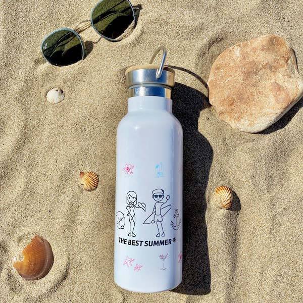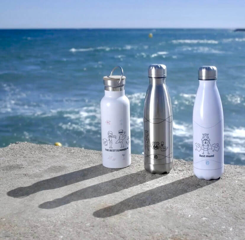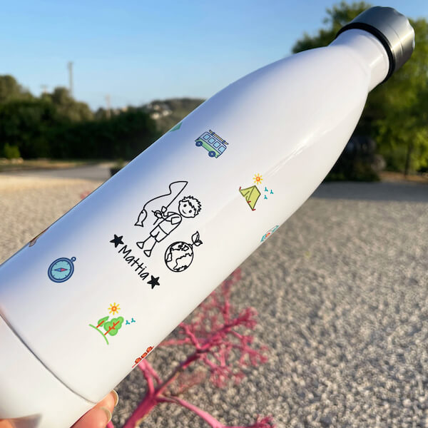 Choisis un accessoire qui correspond à l'imprimé que tu as choisi pour ta gourde. Ajoute un couvercle ou un mousqueton avec la couleur que tu préfères.