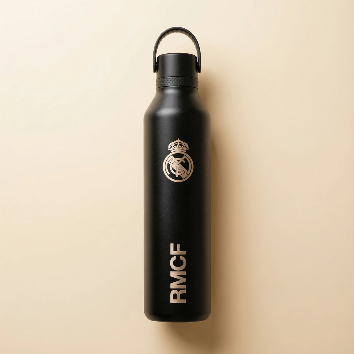 La gourde isotherme céramique Runbott Real Madrid porte l'écusson madrilène gravé avec la précision que mérite le club le plus titré. Intérieur céramique, isolation haute performance et design qui n'a plus besoin d'être présenté.